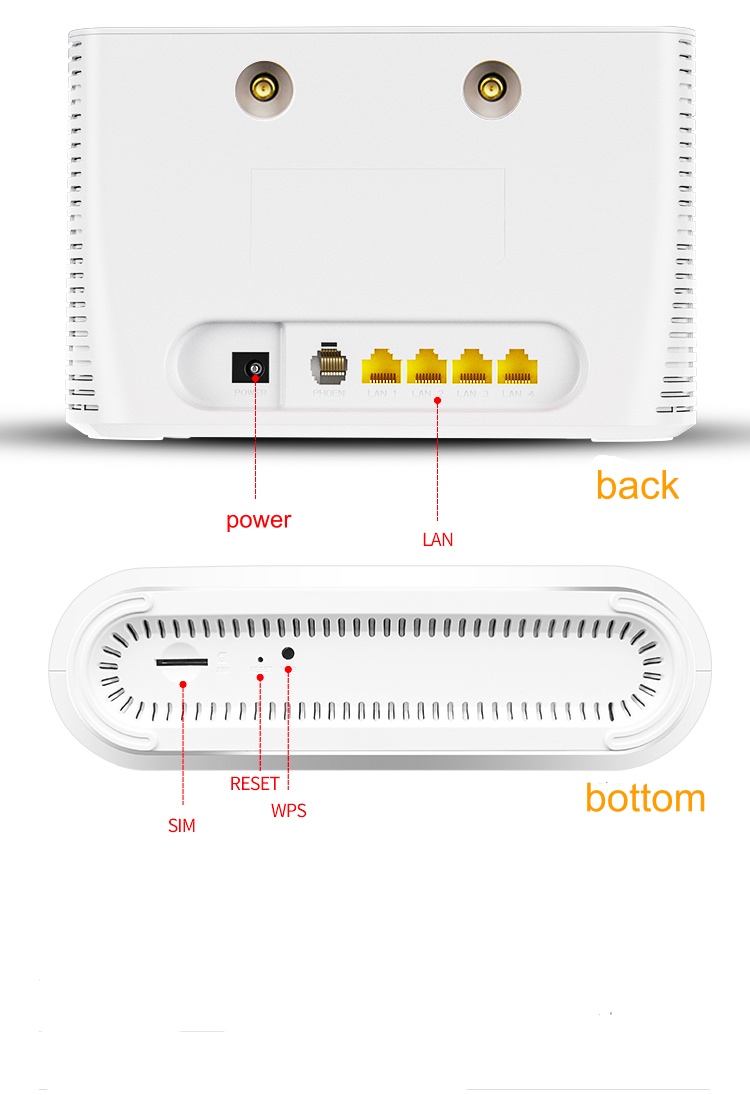 | Interface | 1 x RJ25 telephone interface 1 x WAN 10/100/1000Mbps adaptive Ethernet port 4 x LAN 10/100/1000Mbps adaptive Ethernet port 1 x Sim card slot |