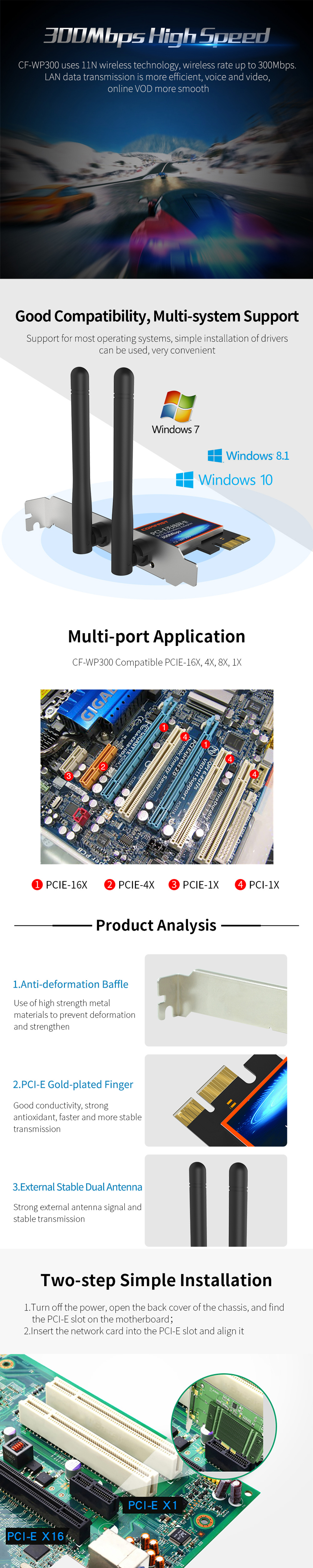 CF-WP300 300Mbps 2.4GHz PCIE WiFi Wireless Networking Adapter LAN Card for Desktop Computer
