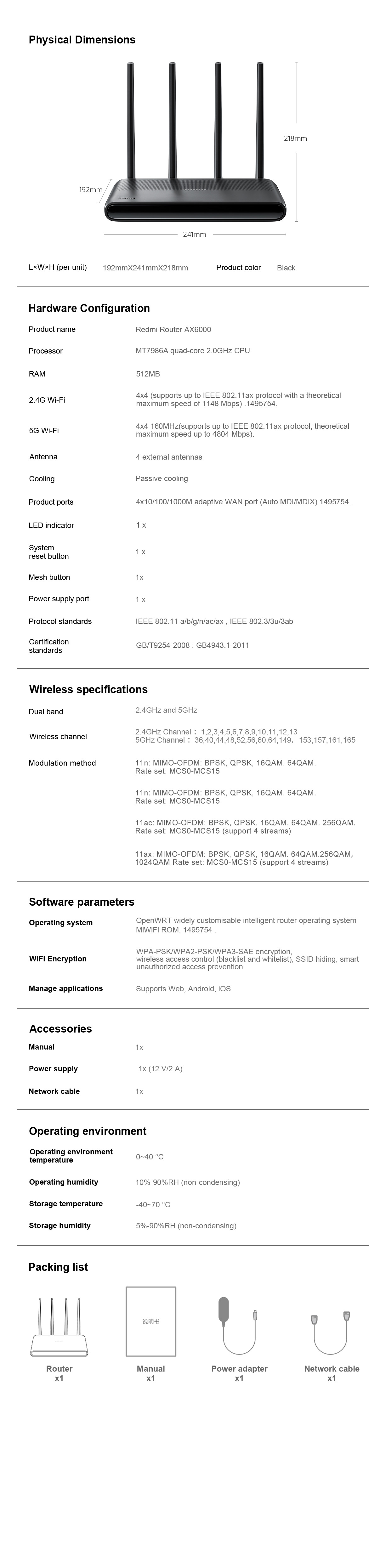 Xiaomi Redmi AX6000 AloT RouterMain Features