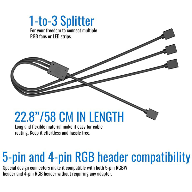 Cooler Master 1-To-3 Addressable RGB Splitter Cable 4Pin 12V ARGB Sync on LED Strips and Fans for Computer Cases Radiators Fans
