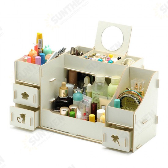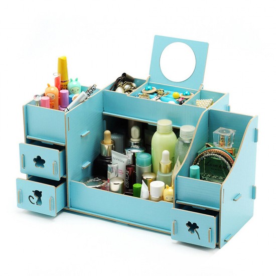 Cosmetics Storage Box Desktop Makeup Box Table Organiser Holder Box Drawer Type Multilayer Division with Mirror Display Box