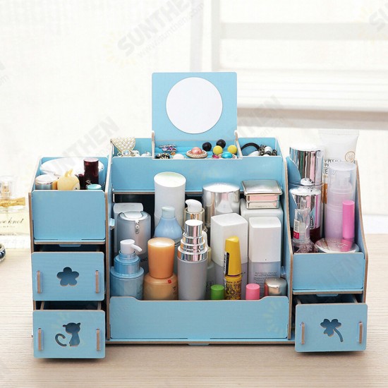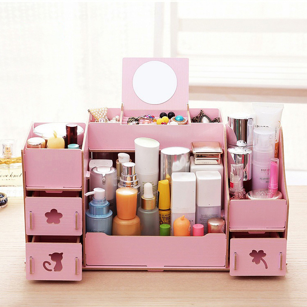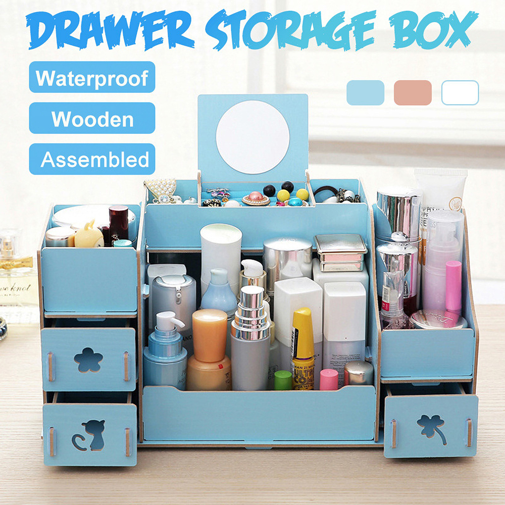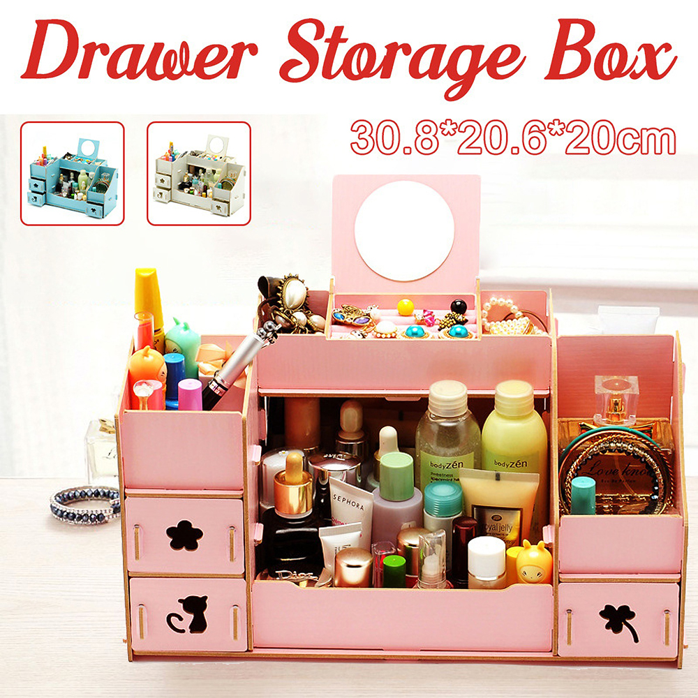 - Makeup cosmetic organizer wood storage drawers display jewelry box countertop container.
