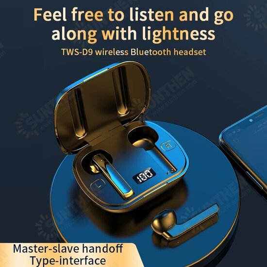 D9 TWS bluetooth Earbuds BT 5.0 Game Touch Control LED Display Wireless Headphone Long Battery Life IPX5 Waterproof HIFI Earphone with Mic