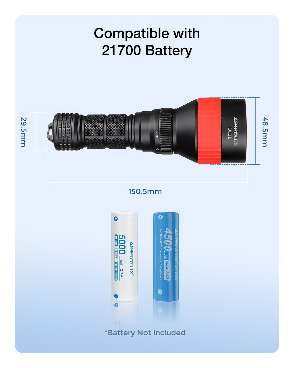 | Battery | 1x 21700 Li-ion Battery (Not included) |