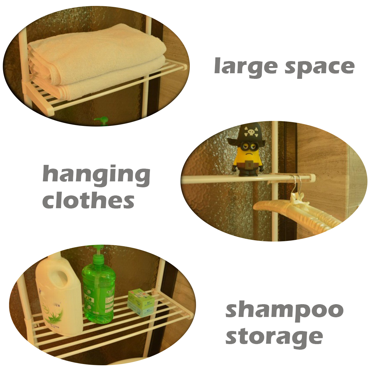 ◆Anti-slip base design. Adjustable rust-free pole uses tension to fit between your bathroom floor and ceiling, tension mounted for easy assembly with no tools or drills required.