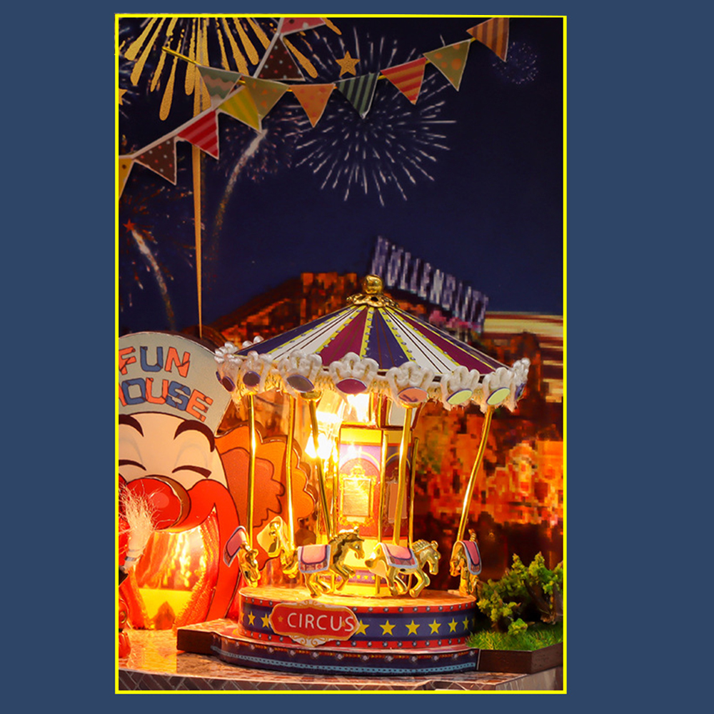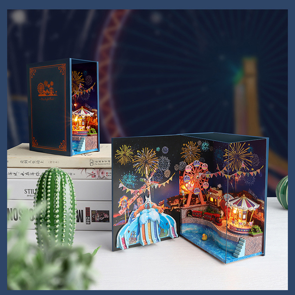 VIAI Amusement Park DIY 3D Decorative Bookends Nook Shelf Insert Kits with Dust Cover & LED Light Puzzle Toy for Child Adult Creative Gifts Home Decor