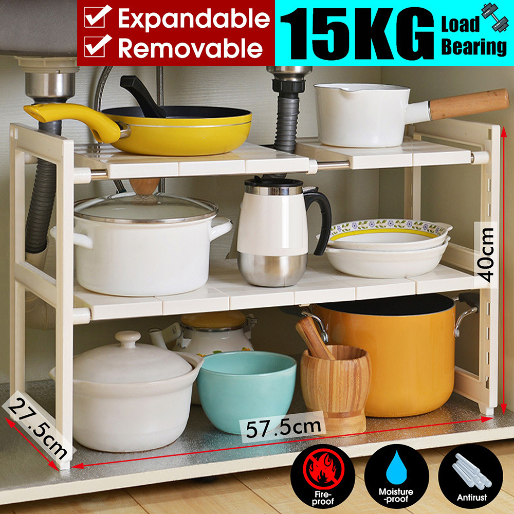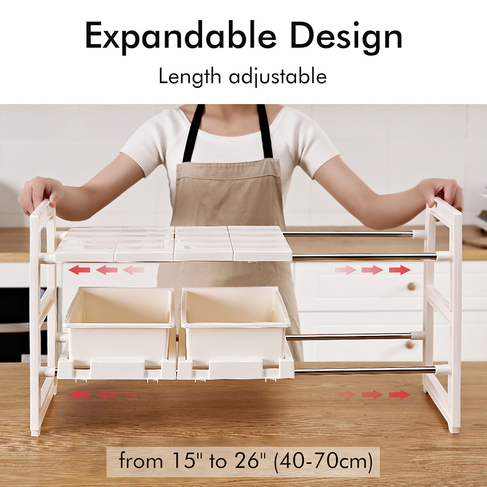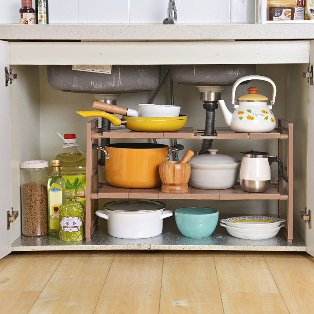 1/ 2 Tiers Retractable Kitchen Shelf Removable Storage Shelf Sink Organizer Shose Rack for Bathroom Bedroom Garden