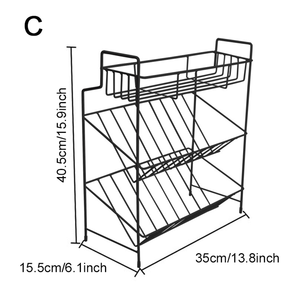 2/3 Layers Shelf Kitchen Utensils Storage Iron Spice Rack Storage Stand Home Organizer Kitchen Shelf-Black