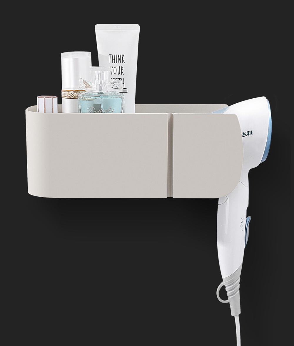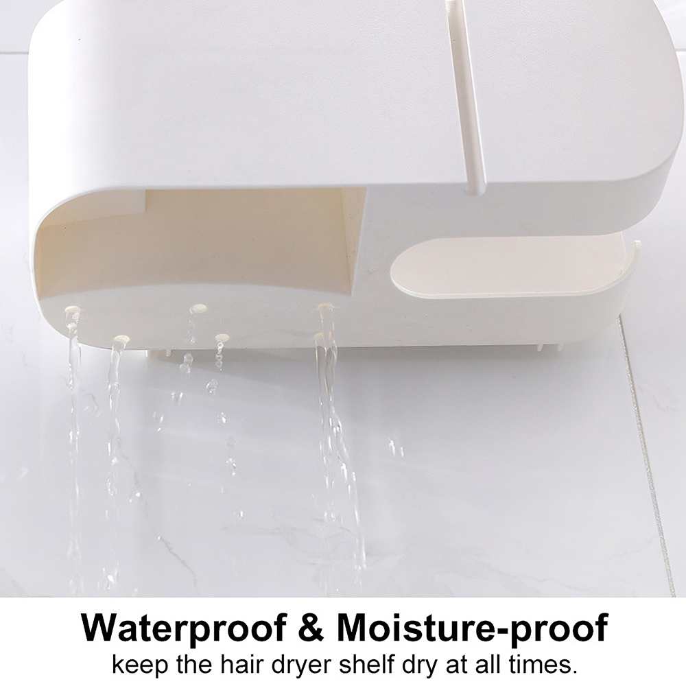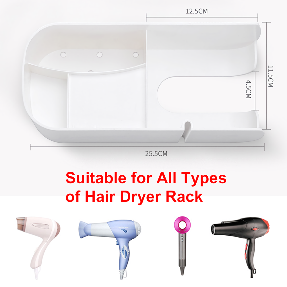 Adhesive Hair Dryer Rack Holder Wall Mounted Storage Rack No Drilling Bathroom Multi-function Plastic Storage Bracket