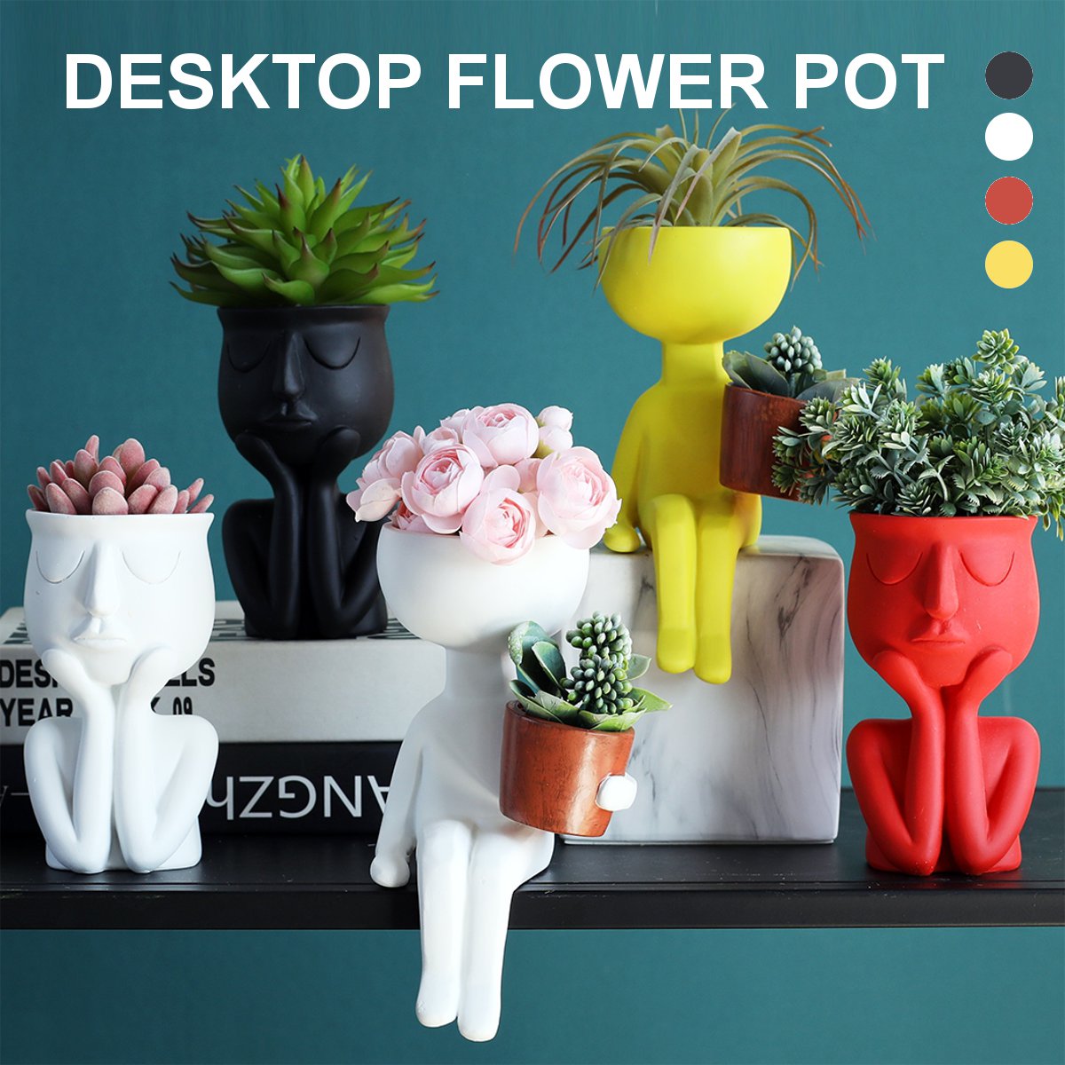 Character Portrait Flower Pot Resin Abstract Human Face Flower Pot Home Desktop Case Micro Landscape Decoration