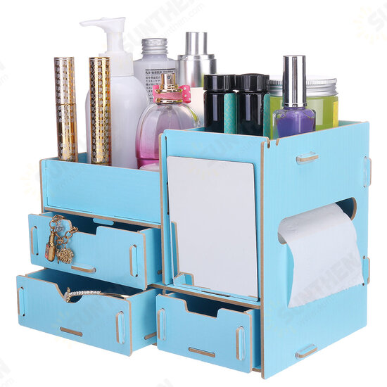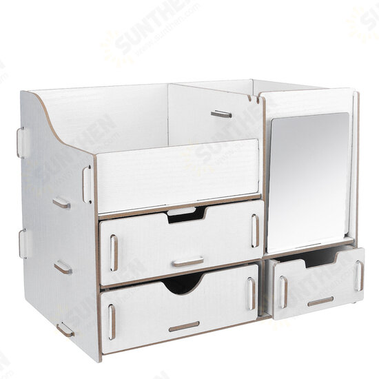 Makeup Organizer with Mirror Drawer DIY Desktop Creative Wooden Storage Box Home Dormitory Desktop Storage Supplies