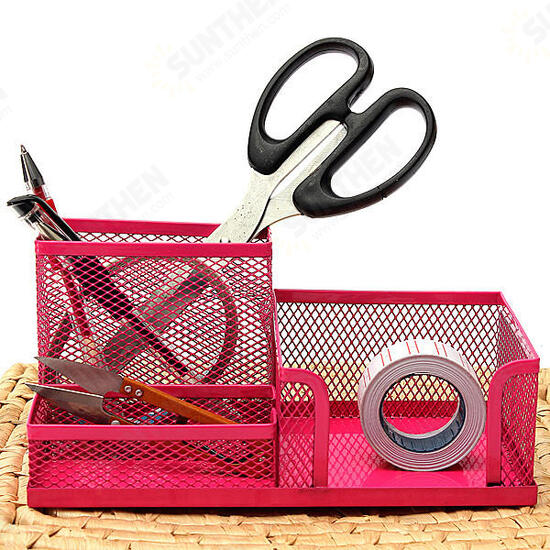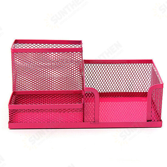 Mesh collection desk accessories have a simple and elegant industrial look and sturdy coated Orange/Blue/Rose/Green metal construction.