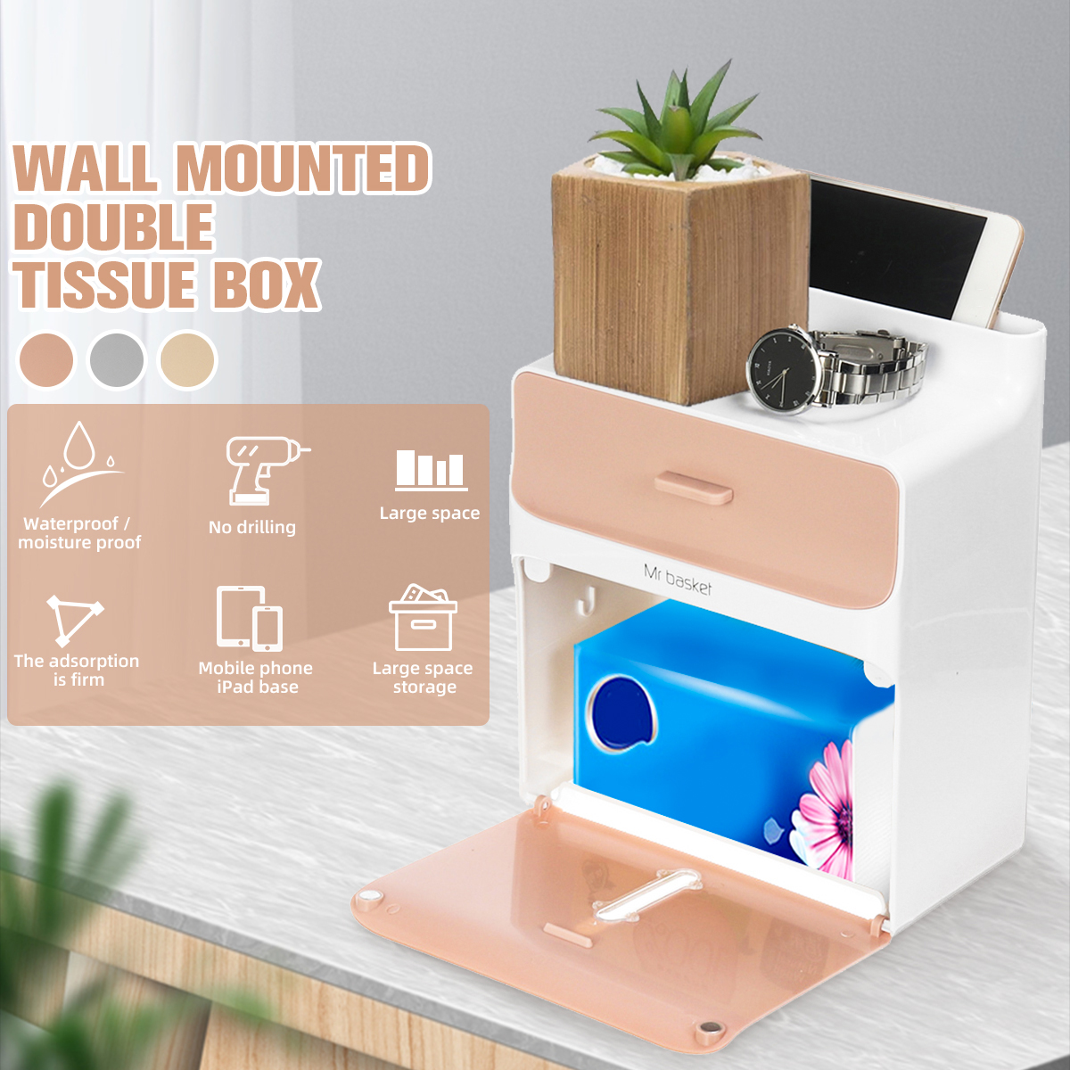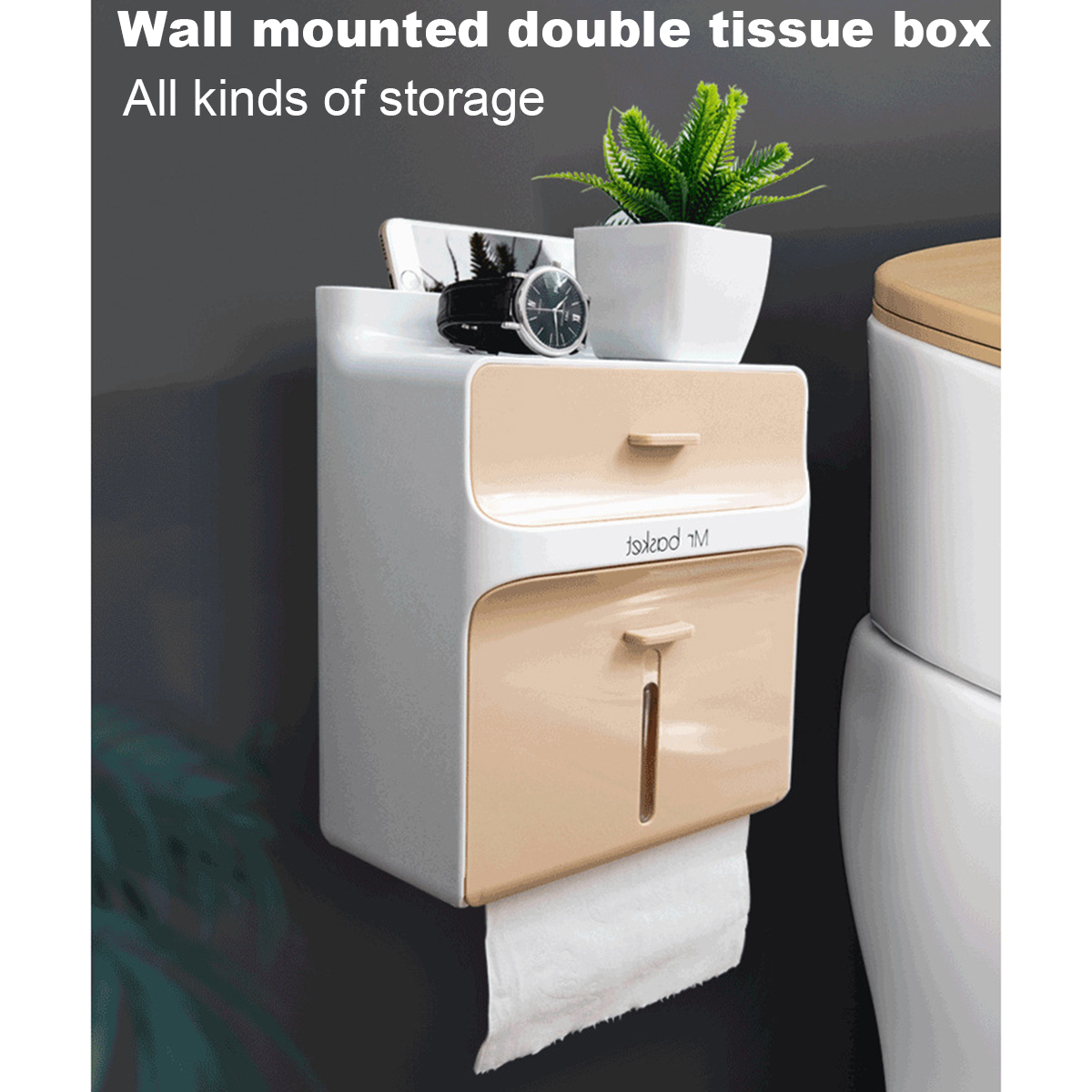 Double Layers Drawer Tissue Box No punching and Waterproof Bathroom Storage Organizer Household Office Desktop Supplies
