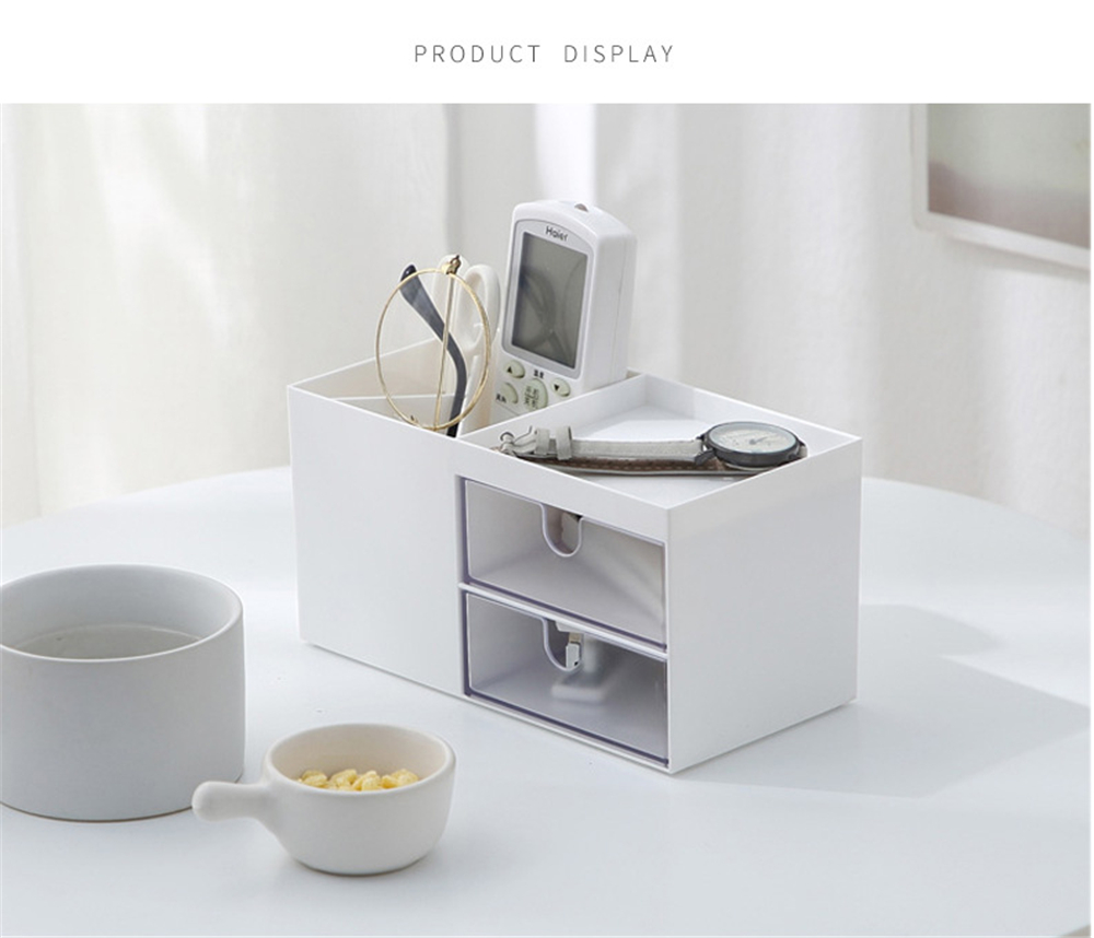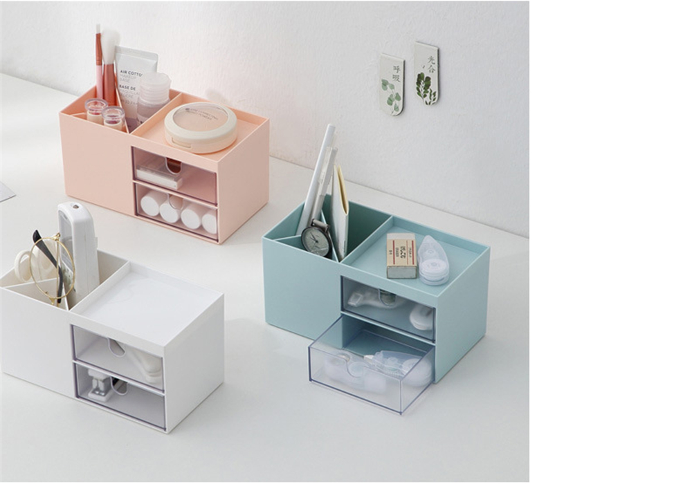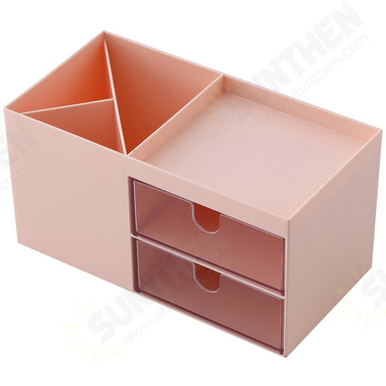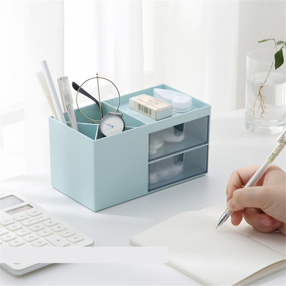 Desktop Storage Box Pen Holder with 2 Drawers Stationery Cosmetics Makeup Brushes Holder Sundries Organizer Office Home School Supplies
