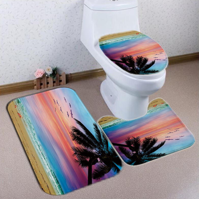 Beach Sunset Style Waterproof Bathroom Shower Curtain Toilet Cover Mat Non-Slip Rug Set for Bathroom Home Hotel