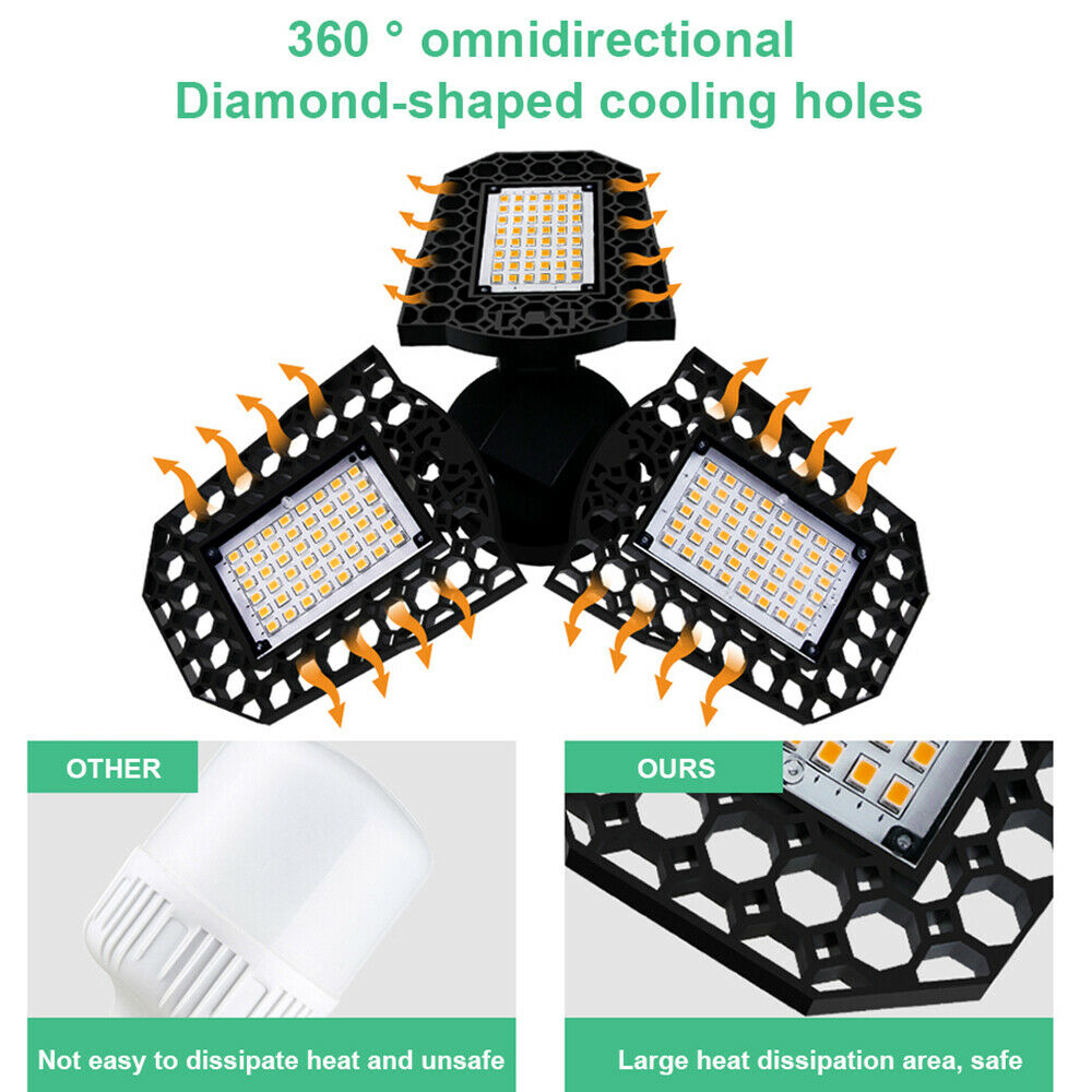 40W E27 Deformable 108LED Garage Light Bulb Waterproof Foldable Fixture Ceiling Workshop Night Lamp 85-265V