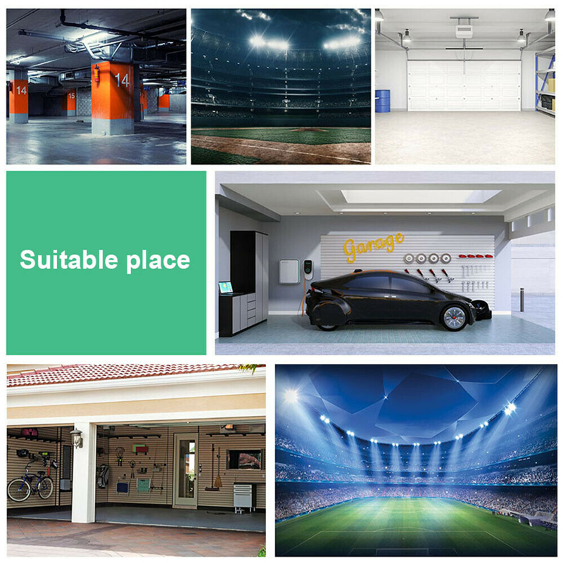 Large garage light Energy-saving, high brightness, low consumption, low-heat generating, long lifespan, corrosion resistant; Advanced cooling system, the Abs design speeds up heat dissipation, is safer to use in commercial lighting and industrial lighting, like work shop light, hanging lights garage, indoor ceiling work light, outdoor garage.