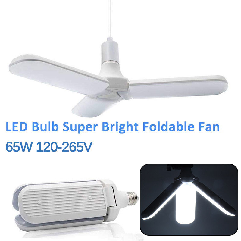 AC120-265V 65W LED Bulb Folding Garage Lamp Fan Blade Adjustable Ceiling Lighting