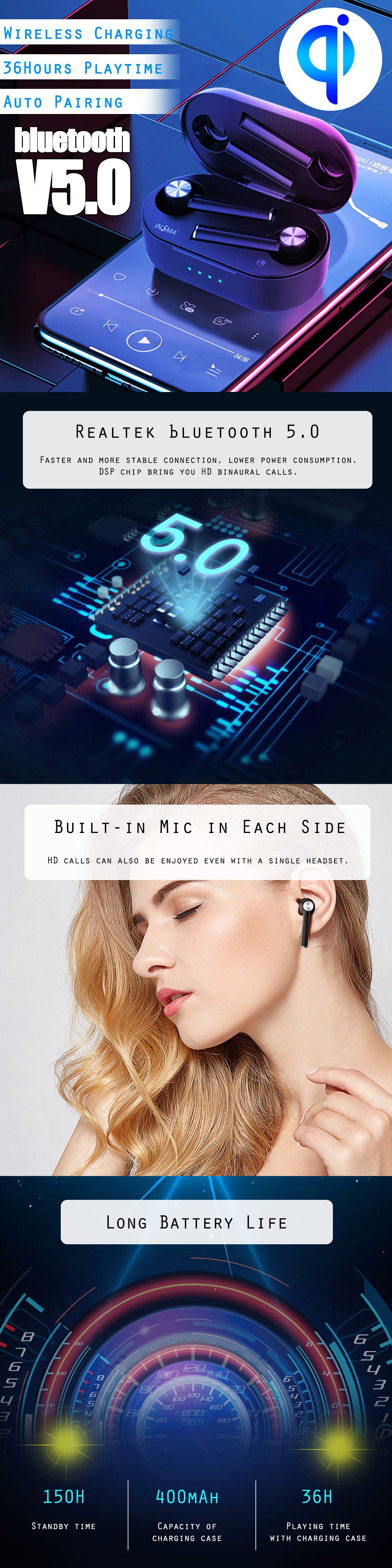 -bluetooth 5.0 Realtek chip, more stable connection and lower power consumption,no delay.