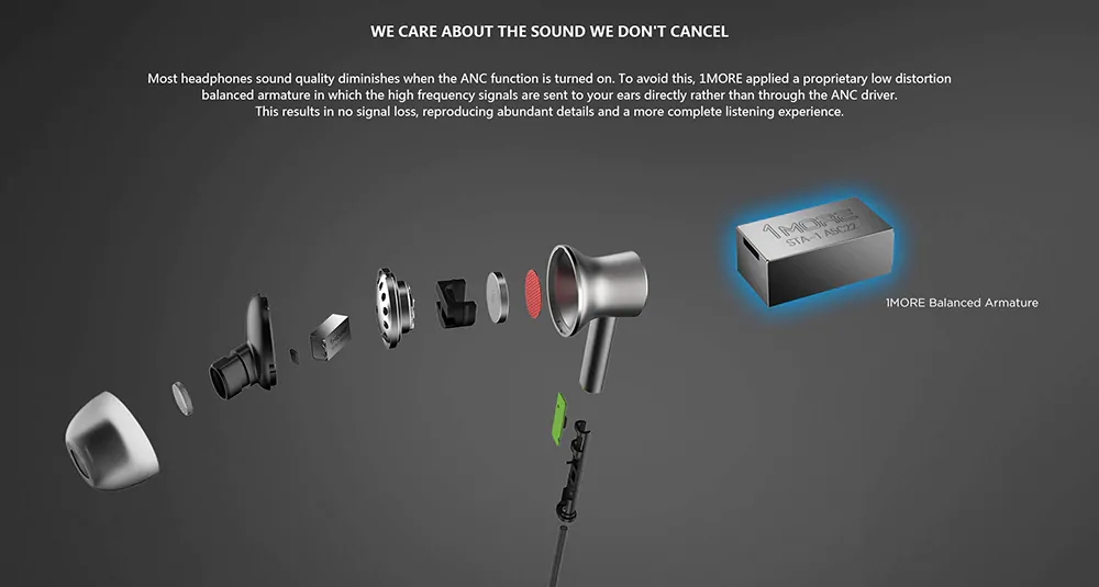 1 MORE's self-schemed TiinLab A2 chip achieves superior ANC by using a wider frequency range EQ adjustment to counteract bandwidth. Enjoy smarter noise cancellation with natural and full sounding audio so you can appreciate a serene listening experience