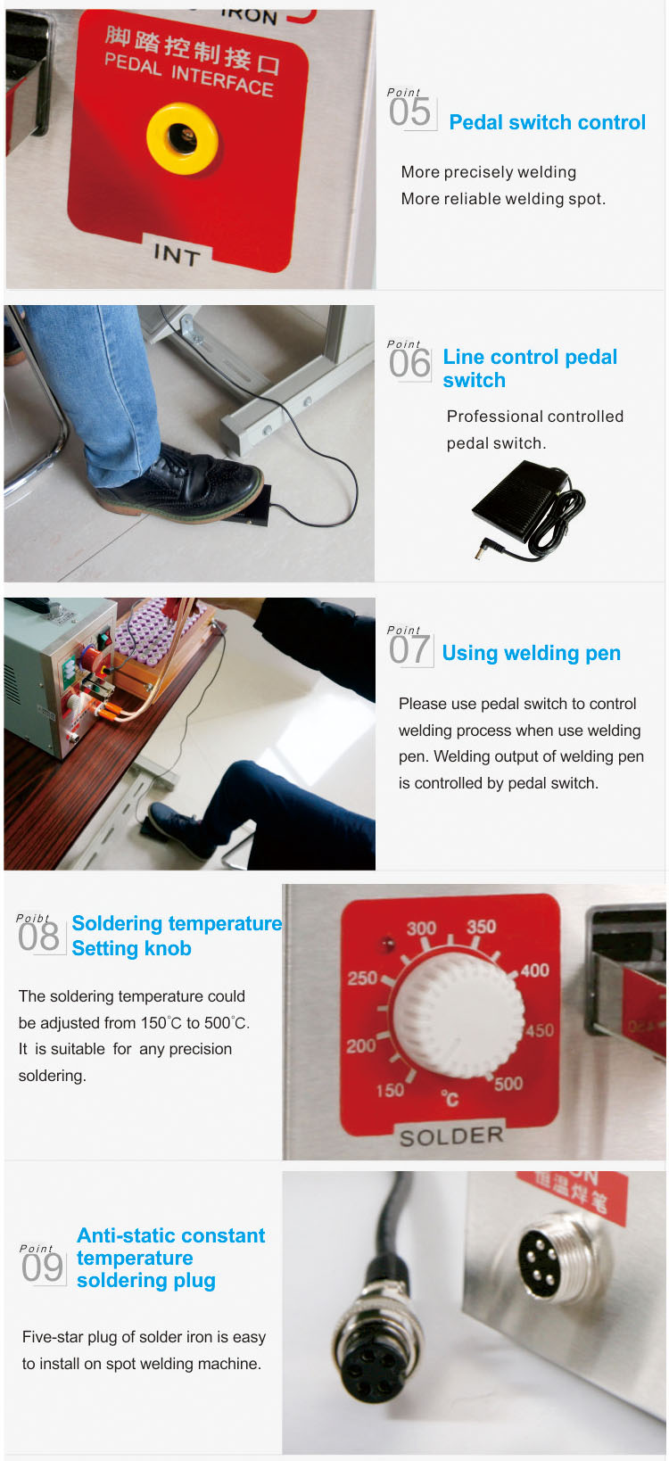 3.Possess the function of 2,4,6,8 welding pulses selection, make the solder joint reliable.