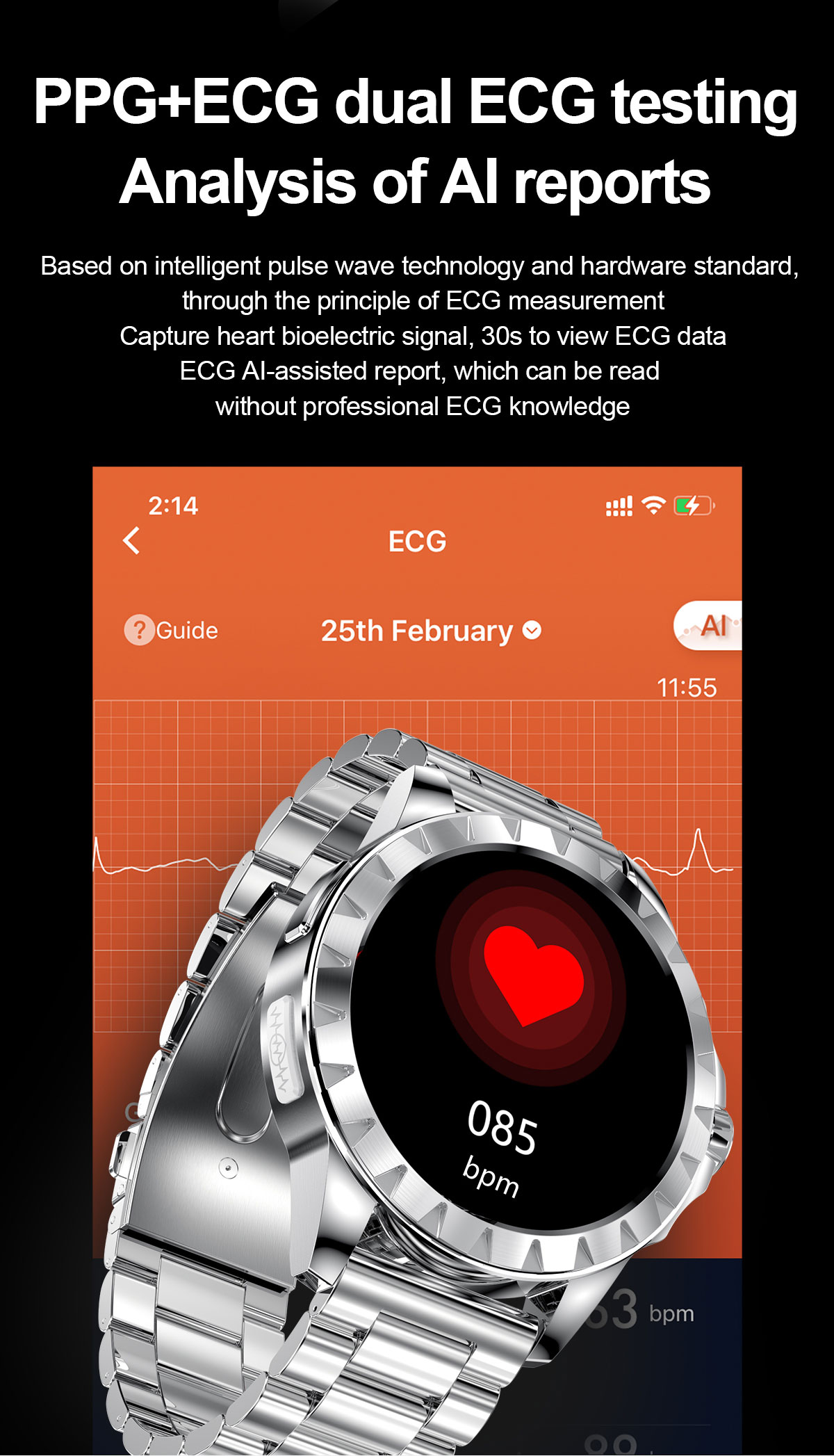1.39 inch 454*454 pixels Touch Screen ECG Heart Rate Monitor bluetooth calling 16 Sports Modes IP67 Waterproof Smart Watch