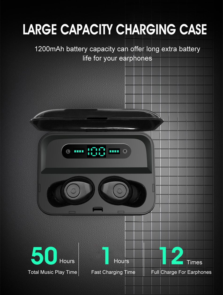 F9 bluetooth 5.0 TWS Headset LED Double Digital Display Graphene Earphone HiFi Noise Cancelling Headphone
