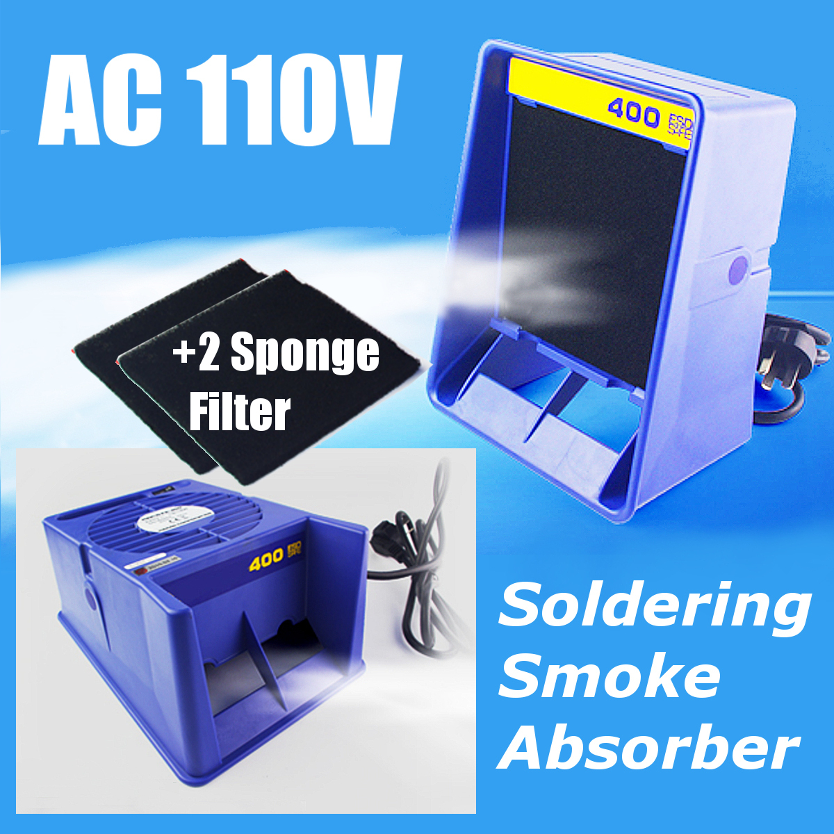 FA-400 110V Soldering Iron Smoke Absorber Remover Fume Extractor Smoke Air Fan + 2 Filters