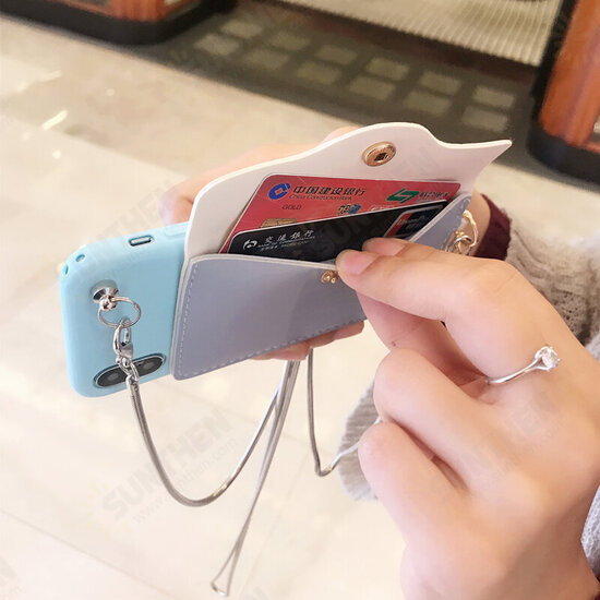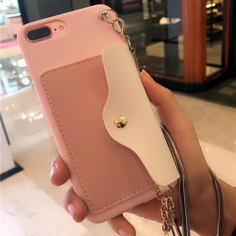 Fashion Creative Wallet Pattern Silicone Protective Case with Strap Card Slot for iPhone X / XS / XR / XS Max / 6 / 7 / 8 / 6S Plus / 6 Plus / 7 Plus / 8 Plus