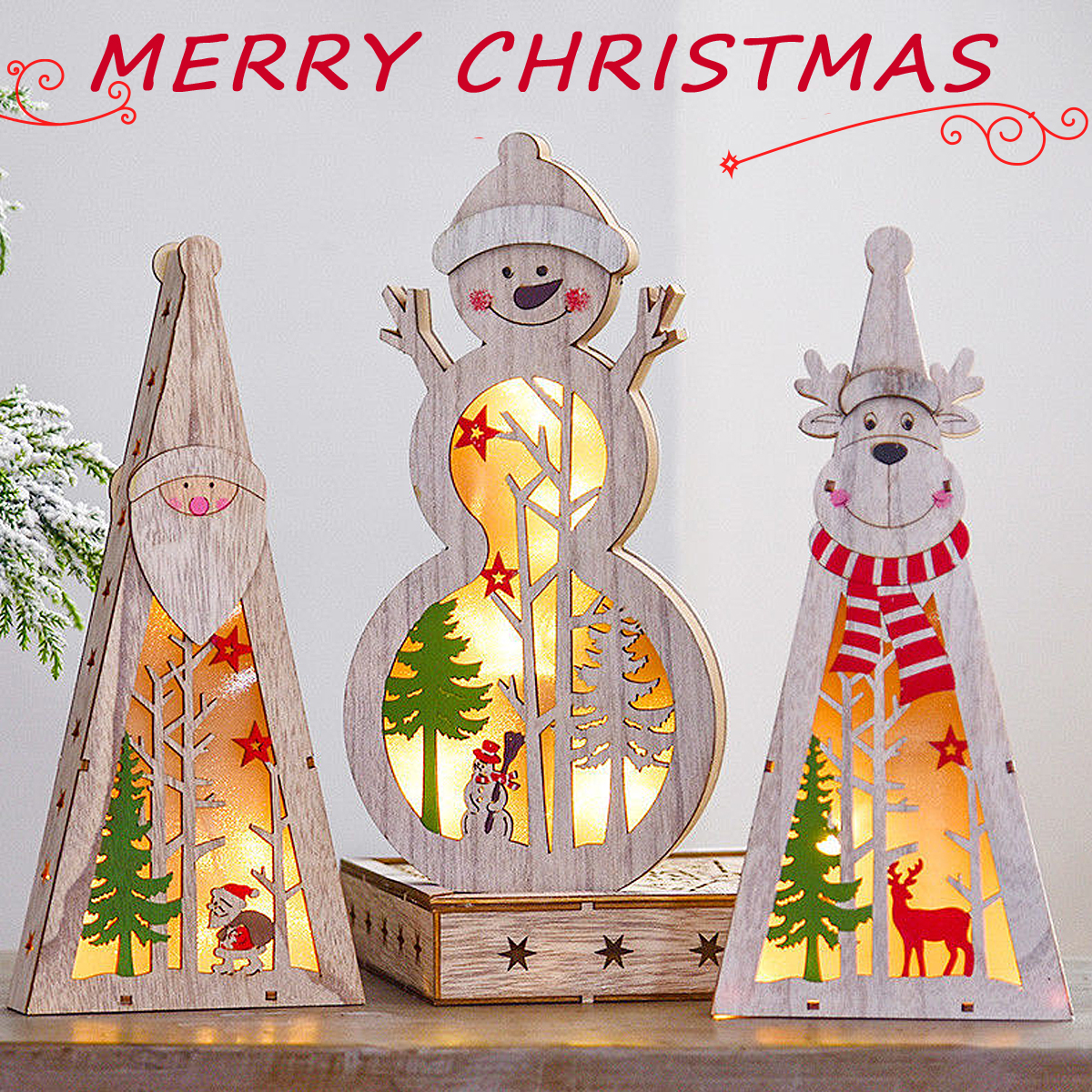 Festival Wooden LED Christmas Light Display Ornament for Christmas Home Table Decorations