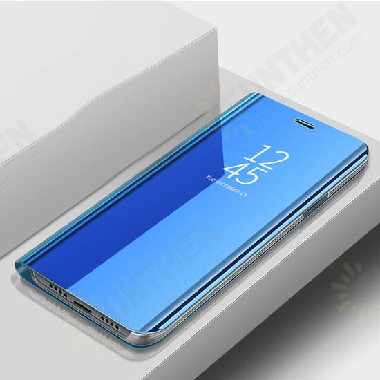 For POCO M3 Case Foldable Flip Plating Mirror Window View Shockproof Full Cover Protective Case