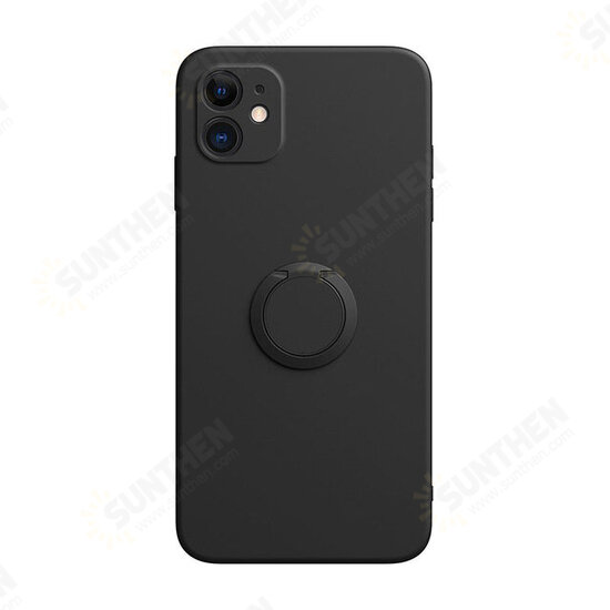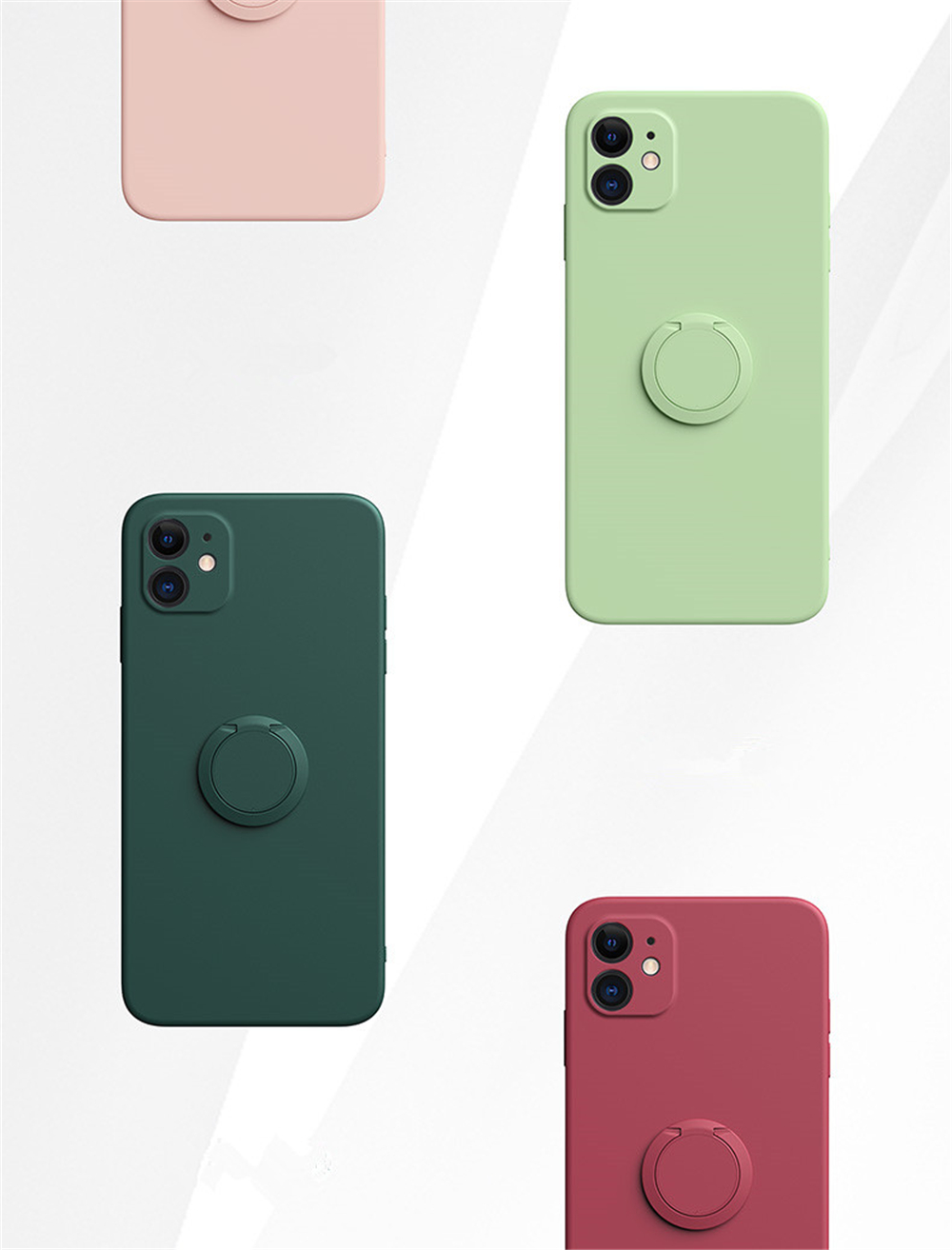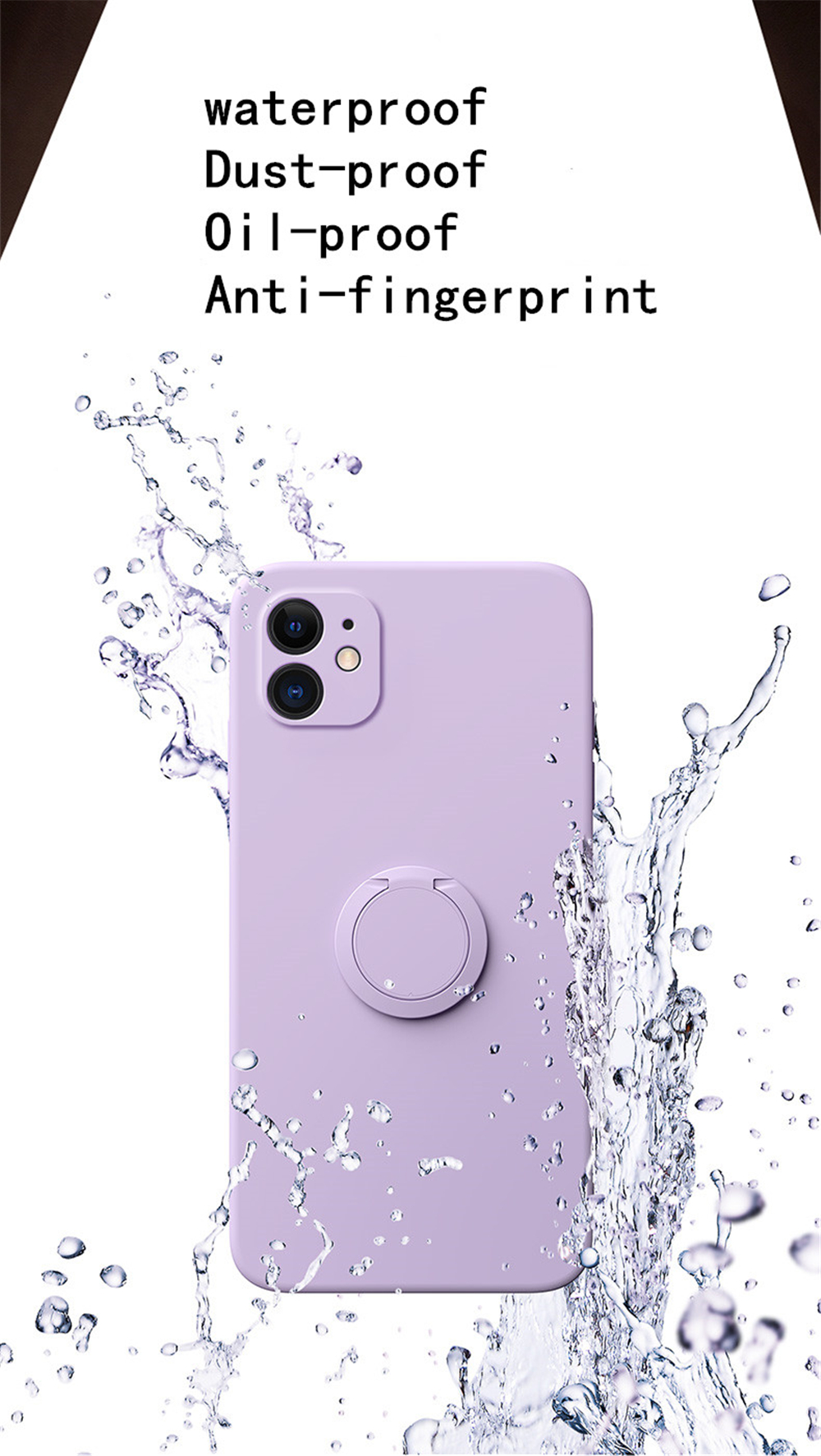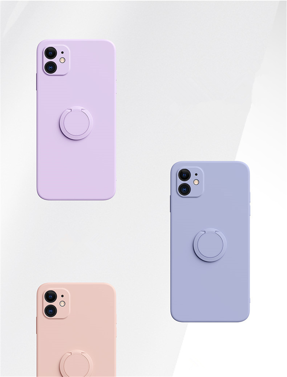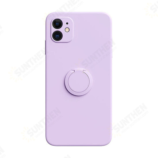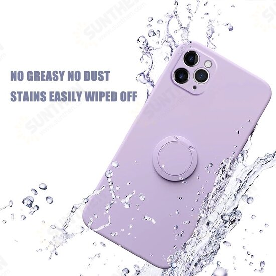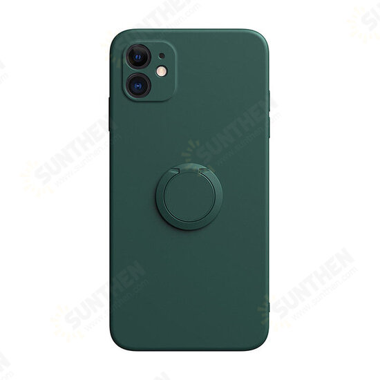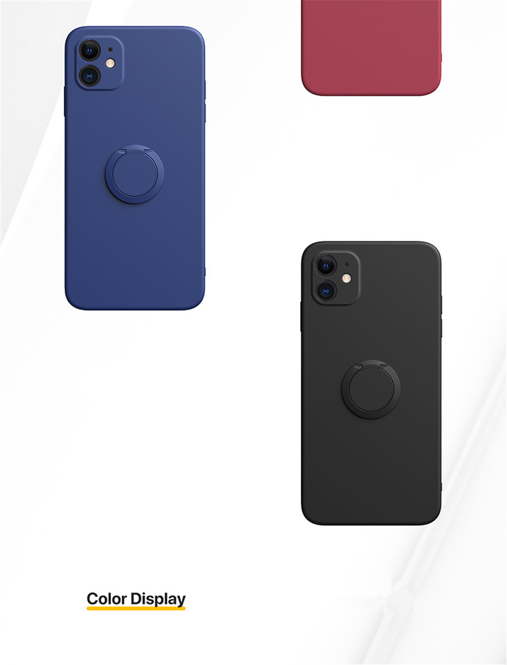 For iPhone 12 6.1 inch Case with Lens Protector Ring Holder Dirtproof Anti-Fingerprint Shockproof Liquid Silicone Protective Case