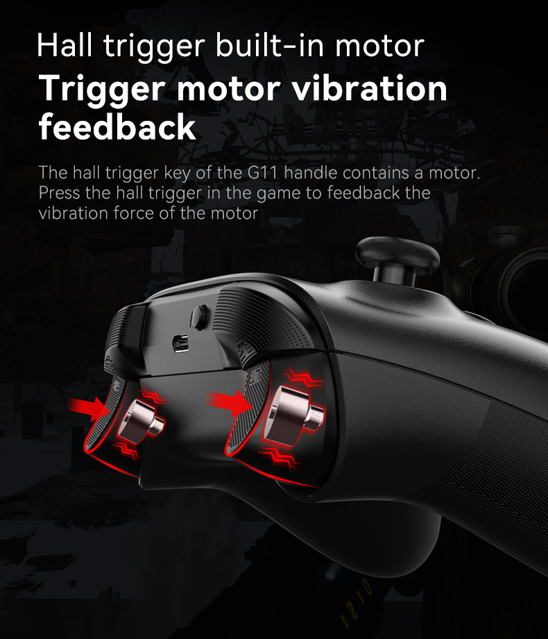 Hall trigger, relying on the principle of electromagnetic induction to control the analog signal to realize the trigger function, the vibration feedback of the trigger motor, and the performance experience leap