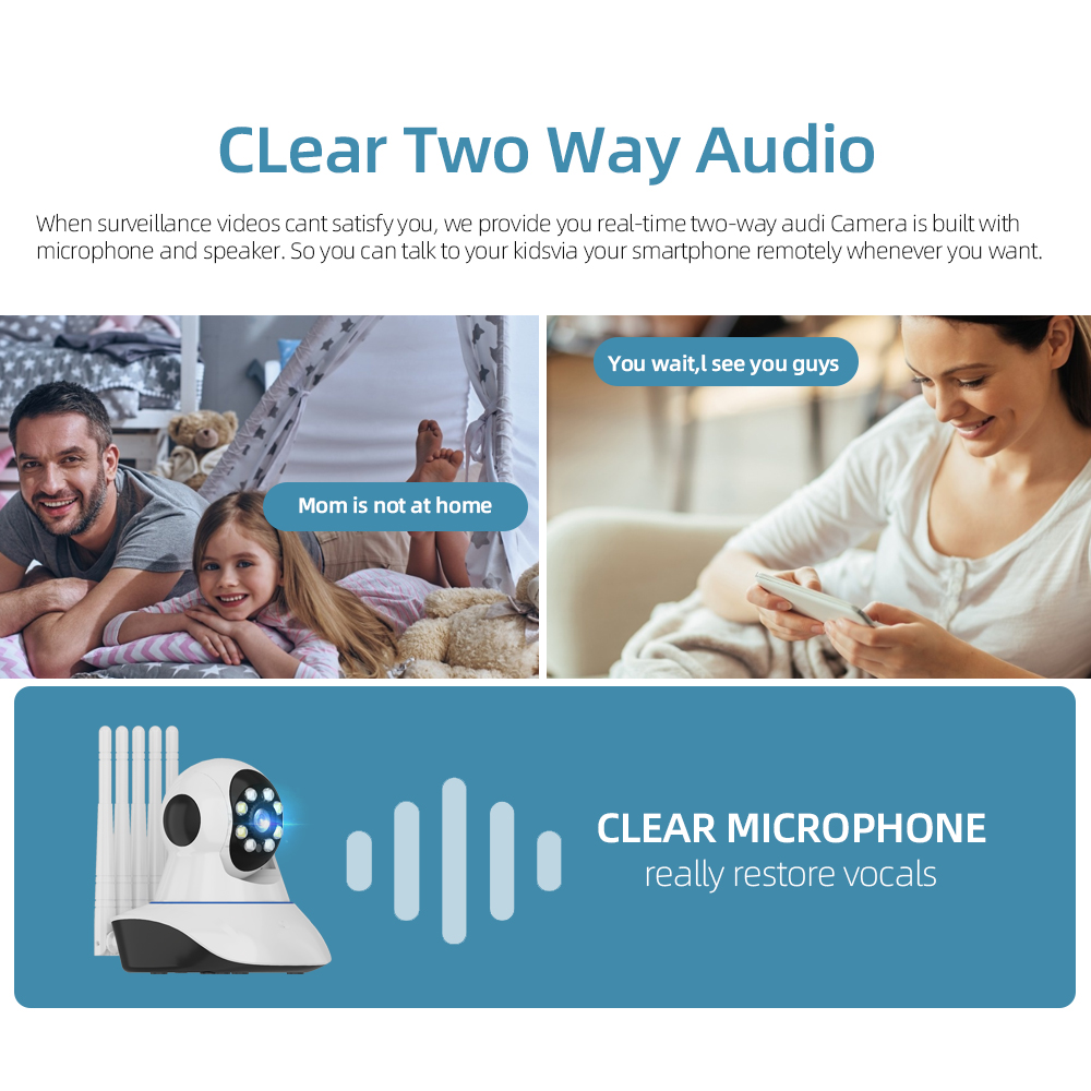 Five Antenna 1080P PTZ WIFI IP Camera 360° Viewing Angle Two-Way Audio Night Vision Cloud Storage Motion Detections Waterproof Dual Light Source Baby Monitor