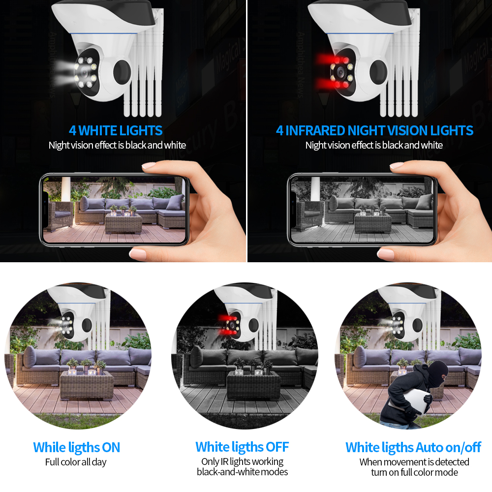 ◆ Intelligent dual-light night vision. 4pcs infrared lights+4pcs White Lights, Bring you a clearer experience.