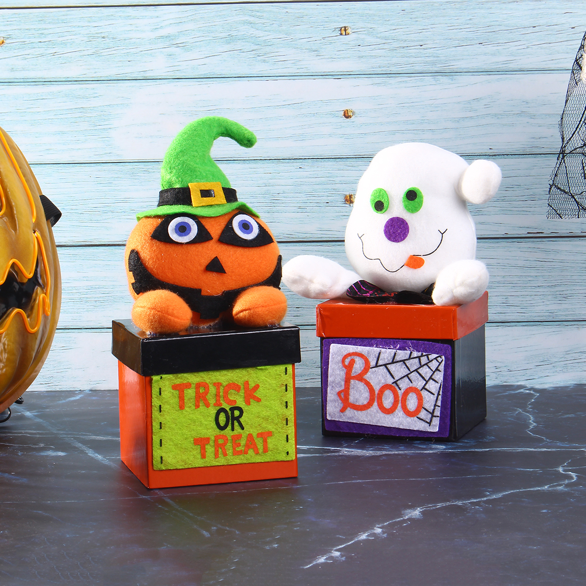 - The candy box's top has very cute trick or treat toy doll, create a perfect festival atmosphere.