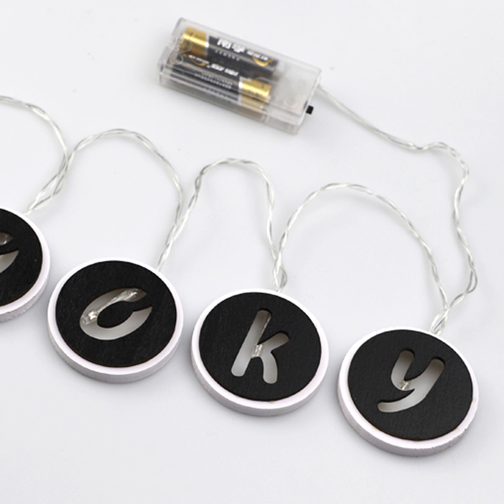 Wooden SPOOKY Alphabet Evil Pumpkin Pattern LED Light String Halloween Pendant Crafts For Home Party Decoration