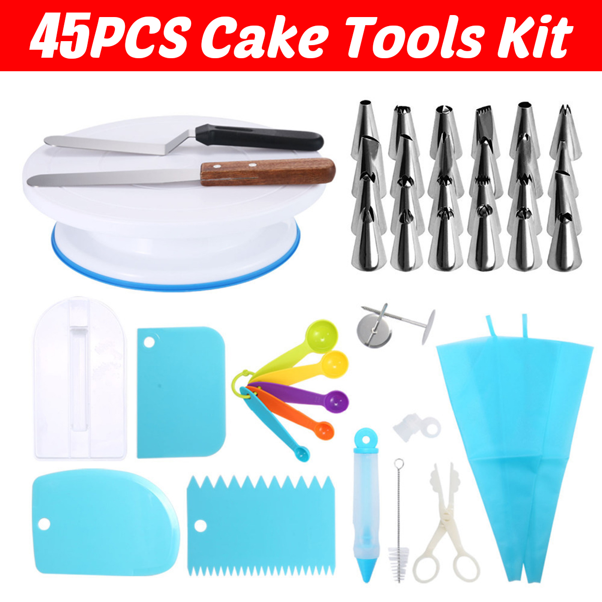 45Pcs/Set Cake Turntable Rotating Rack Knife Pastry Nozzle Decor DIY Baking Tool
