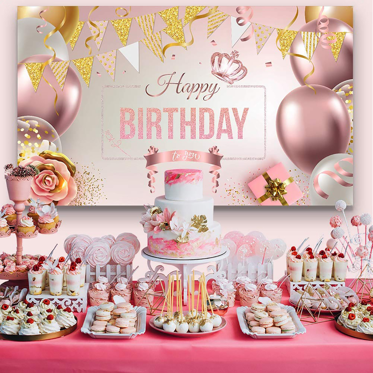 Happy Birthday Decorations Banner Large Rose Gold Balloons Backdrop Theme Poster