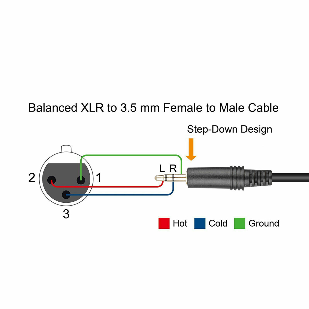 XLR TO HEADPHONE jack cable combines the left and right stereo signal from a source with 3.5mm stereo output to a single mono feed
