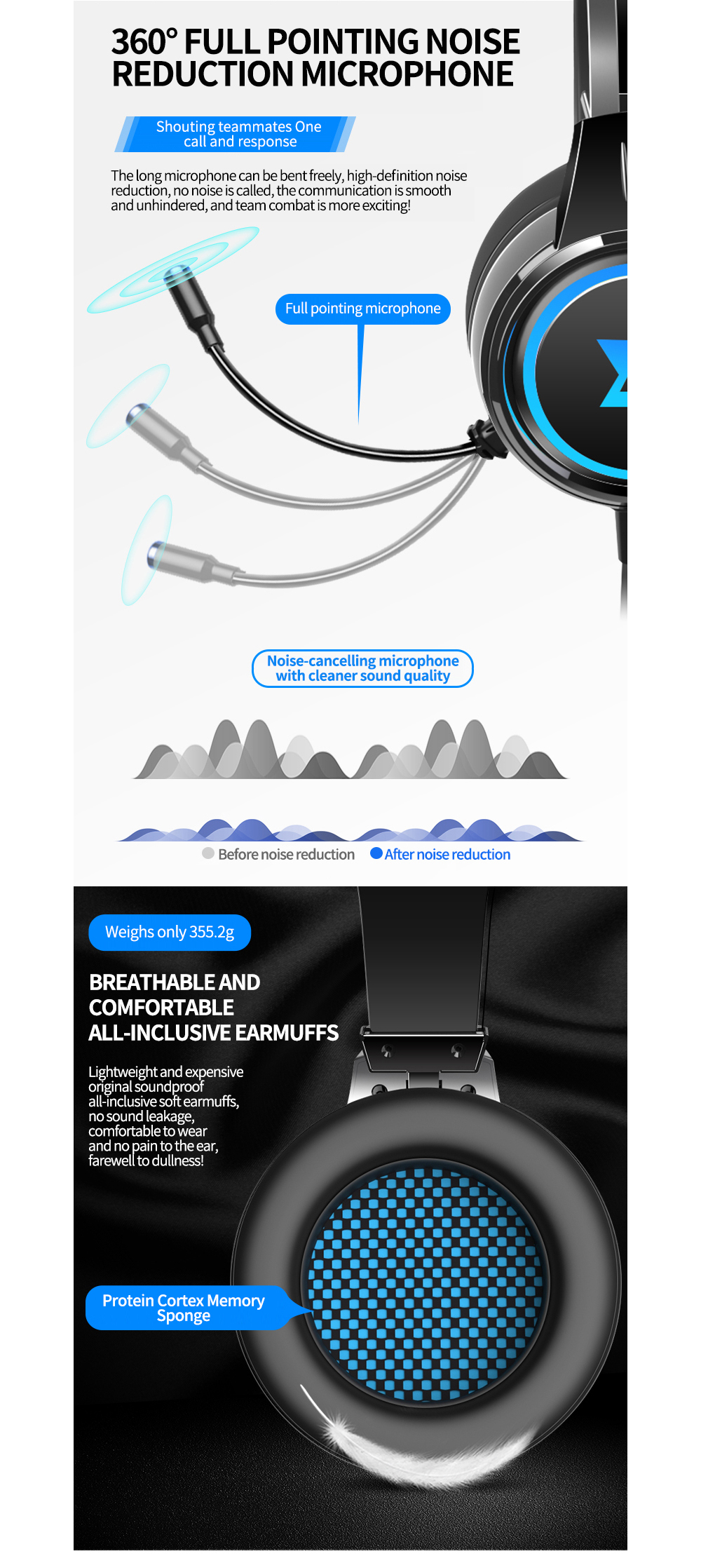 4. 360° omnidirectional noise reduction microphone, 7 color breathing light.