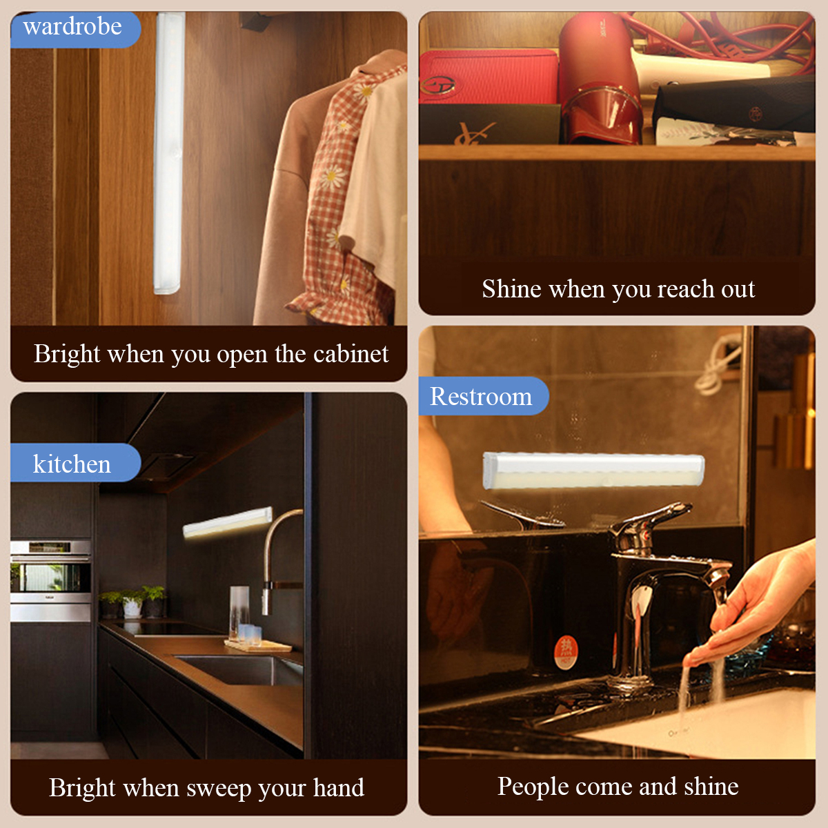 3. People come to light, people go to the lamp: optimized induction control design, can achieve light, automatic delay-to-stop, no need to go back to the stop switch, saving energy-, no longer if you forget to turn off the lights and problems, free yourself.