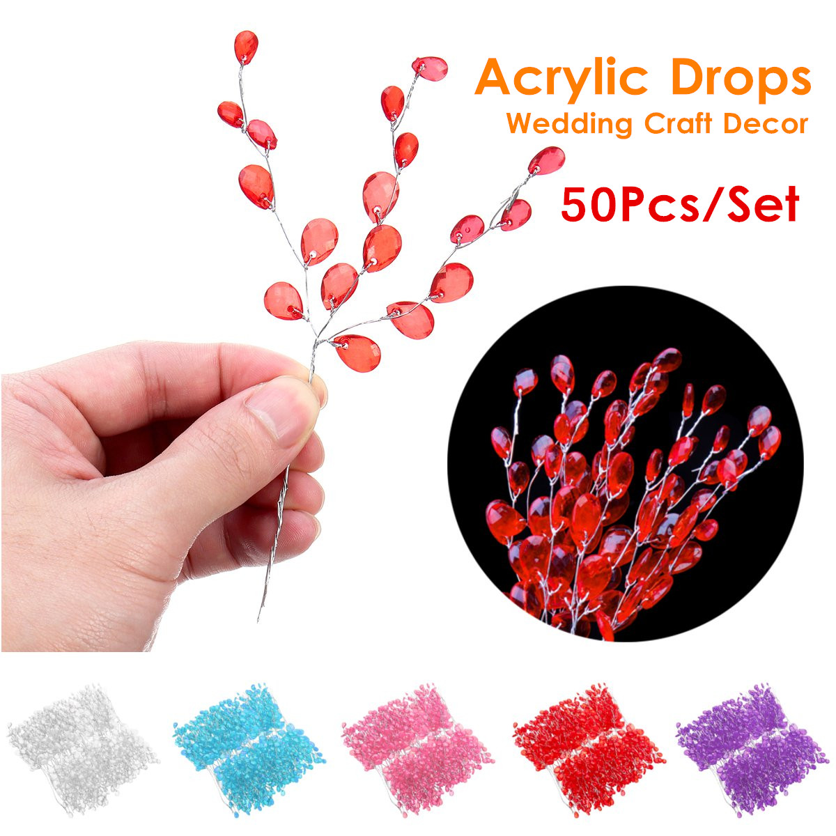 50PCS DIY Clear Acrylic Drops Crystal Bead Spray Wired Stems Wedding Craft Decorations