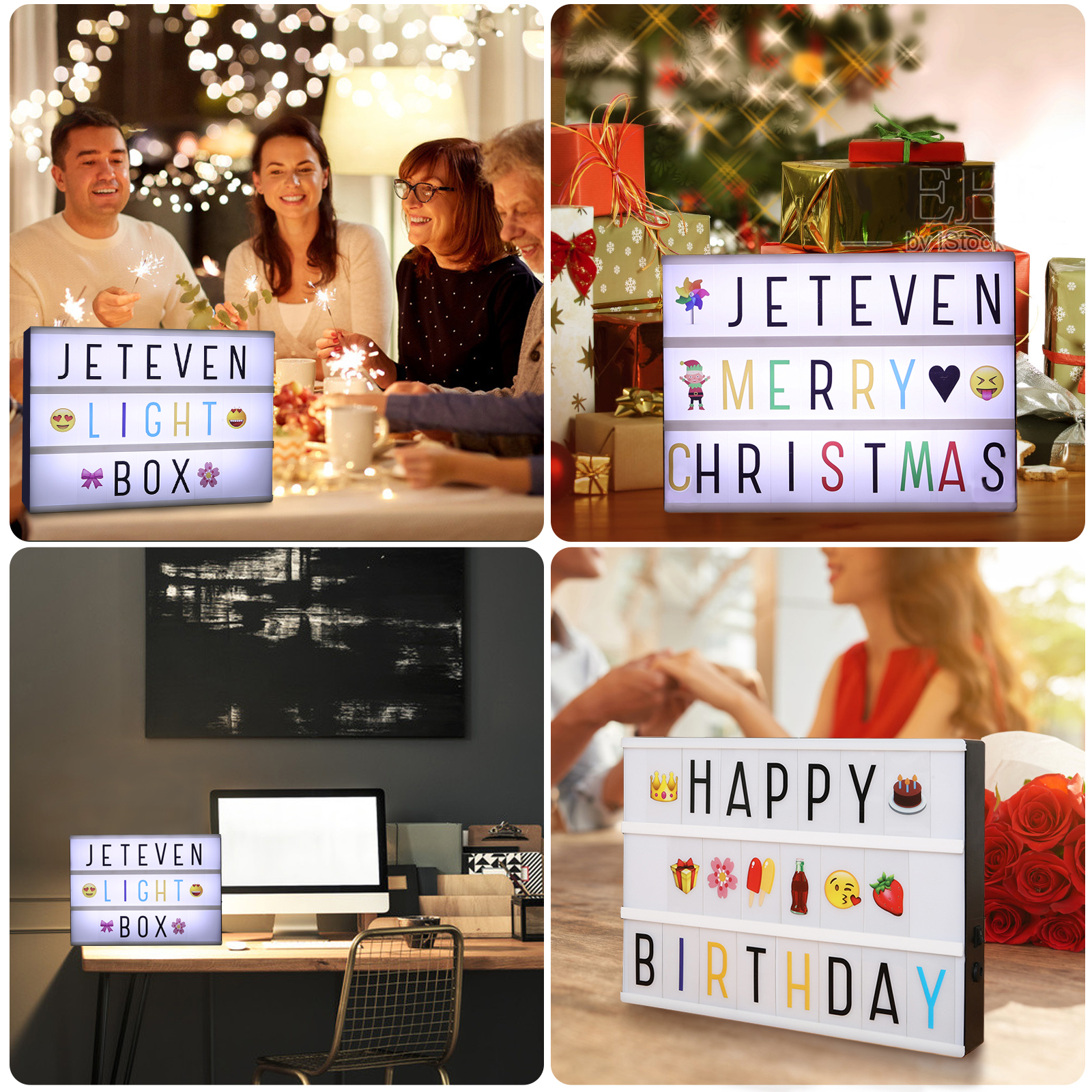 JETEVEN A4 LED Combination Light Box Night Light DIY Letter Symbol Card Decoration USB/Battery Powered Message Board