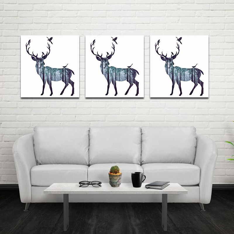 Miico Hand Painted Oil Paintings Simple Style-A Side Face Deer Wall Art For Home Decoration Painting
