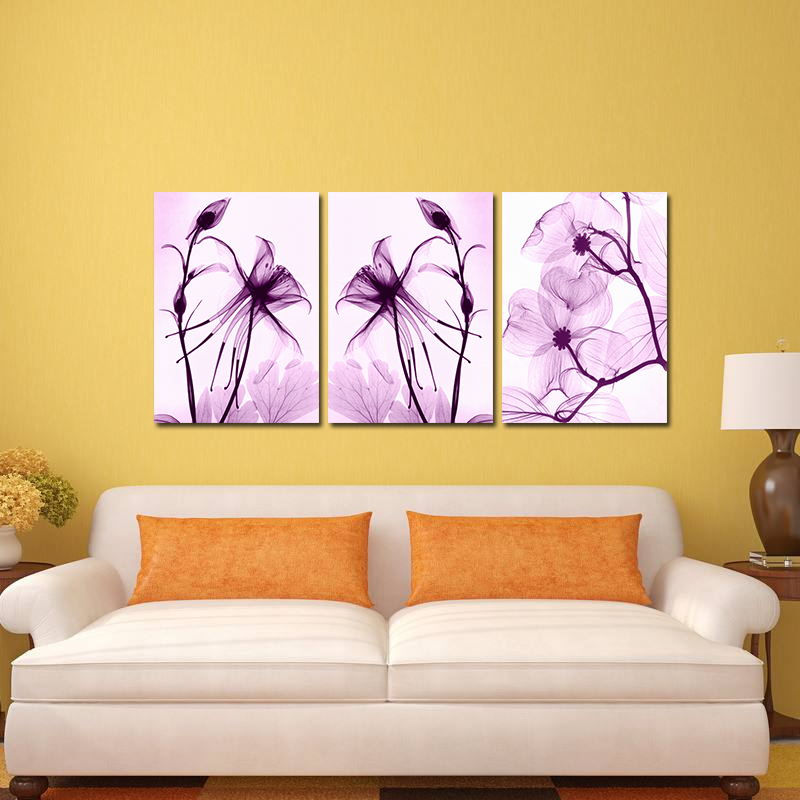 Hand Painted Three Combination Decorative Paintings Botanic Purple Flowers Wall Art For Home Decoration