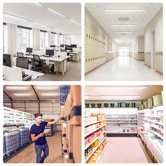 1. Energy saving & wide usage scenarios: LED ceiling lighting has low power consumption, and LED workshop lighting can save 85% of electricity bills. LED fluorescent lights are very suitable for garages, cabinets, warehouses, basements, workshops, workbenches, kitchens, corridors, schools, laundry rooms, utility rooms, recreation rooms, offices, etc.