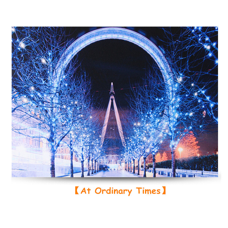 40 x 30cm Operated LED Christmas Snowy Street Ferris Wheel Canvas Print Wall Paper Art