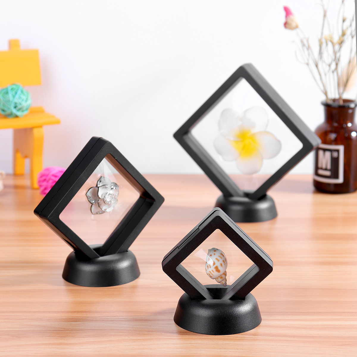 Square 3D Album Floating Frame Holder Coin Box Jewelry Box Display Showcase with Stand
