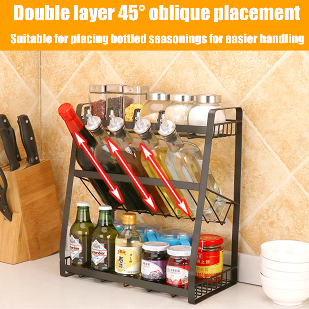 3 Layers Kitchen Spice Rack Stainless Steel Countertop Spice Jars Bottle Shelf